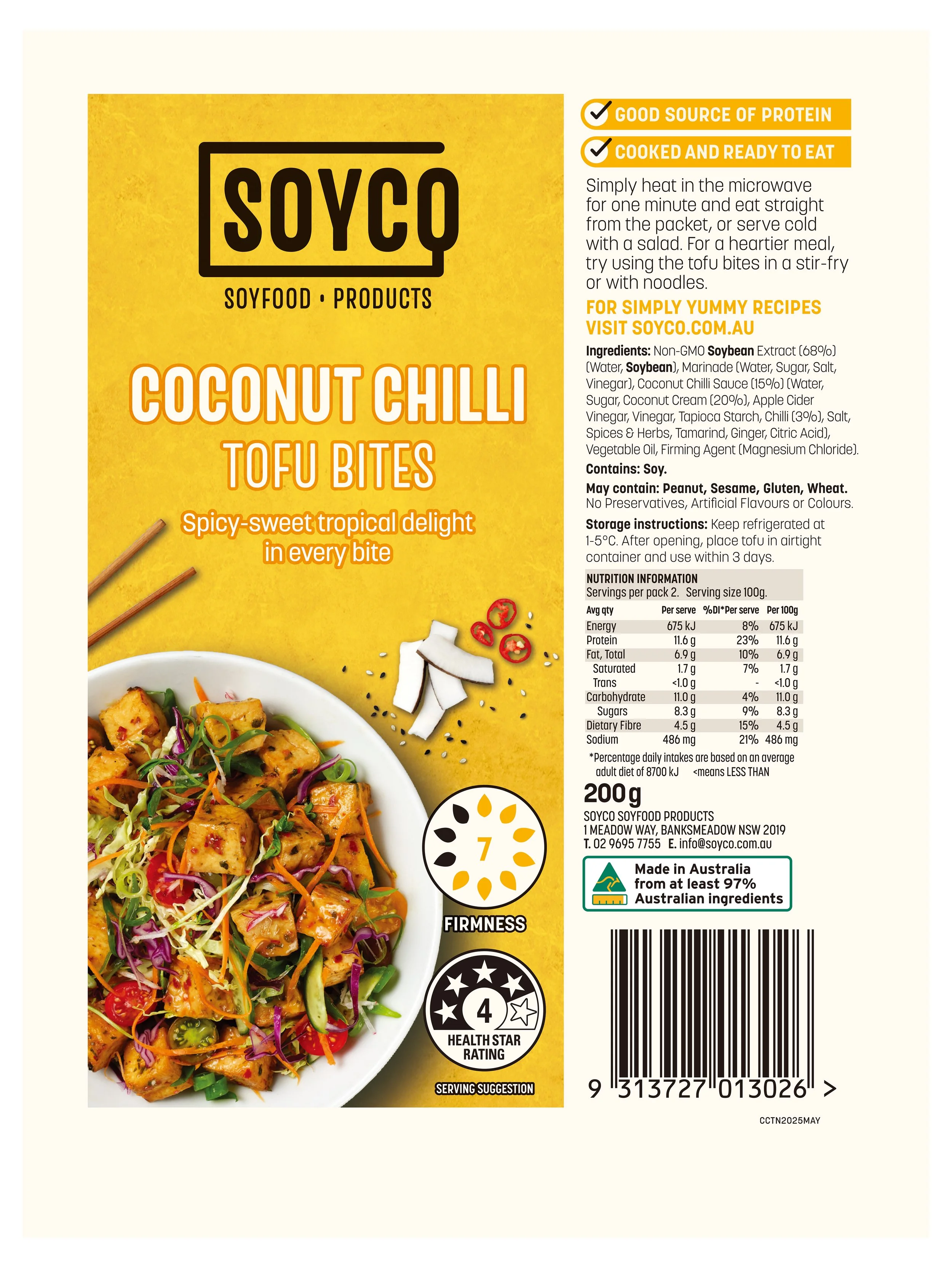 A zesty ready-to-eat tofu which has been marinated in a delicious blend of Thai spices!